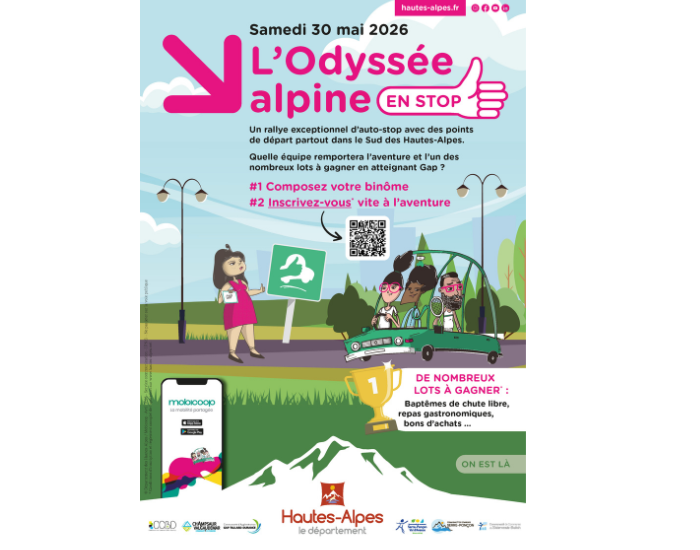 L'Odyssée Alpine en stop, 1ᵉʳ rallye d'autostop organisé dans le sud des Hautes-Alpes, se déroulera le samedi 30 mai 2026.