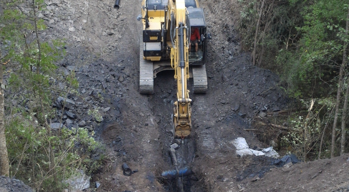 Afin de respecter les délais, le chantier se déroule concomitamment sur 2 secteurs : l’un depuis le torrent des Moullettes jusqu’au dessous de la route communale des Seymats, l’autre depuis le dessous de la RN 94 jusqu’au torrent de Malefosse. C’est l’entreprise Provence Alpes Canalisation qui est chargée d’effectuer ces travaux